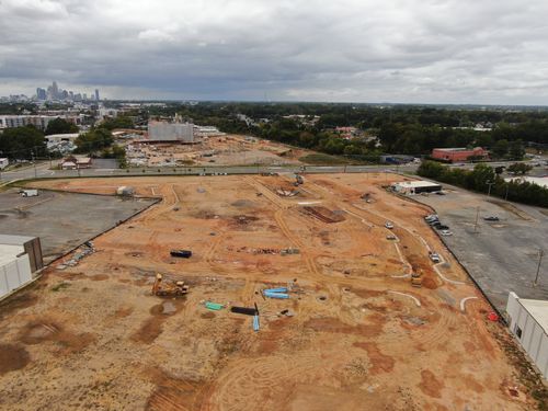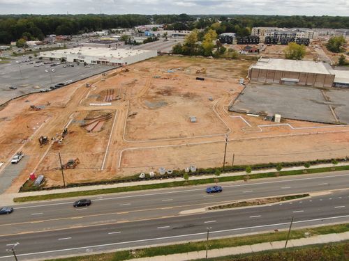 This multiphase project begins with the residential development of 186 townhomes, built in partnership with Copper Builders and Toll Brothers. The development occupies 11 acres on East Sugar Creek Road and Greensboro Street, adjacent to the new location of Le's Sandwiches & Cafe (217 East Sugar Creek) and near the Independent Picture House (4237 Raleigh Street).